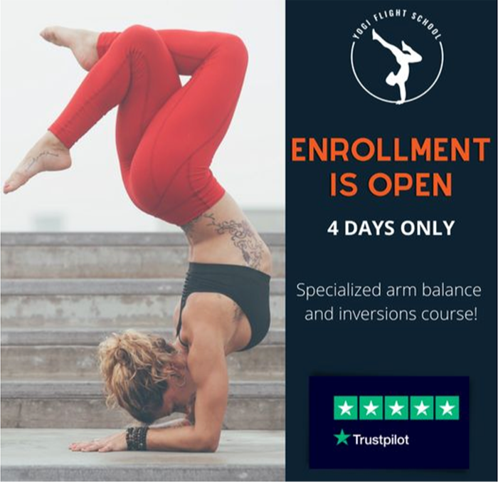 Are you ready to change your story and make the impossible, possible? Yogi Flight School's unique online handstand, headstand, forearm stand and arm balance training course will skyrocket your arm balance and inversion practice...and your life, guaranteed.